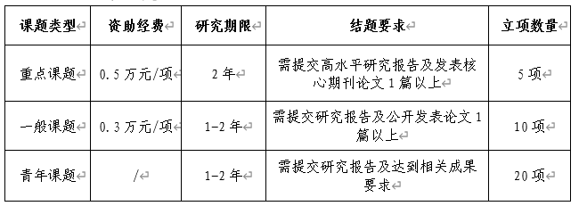 研究周期:立项课题原则上需在2年内完成,研究期限自课题批准立项之日起计算