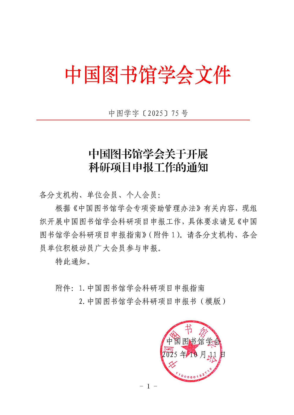 通知原文:中国图书馆学会关于开展科研项目申报工作的通知.pdf