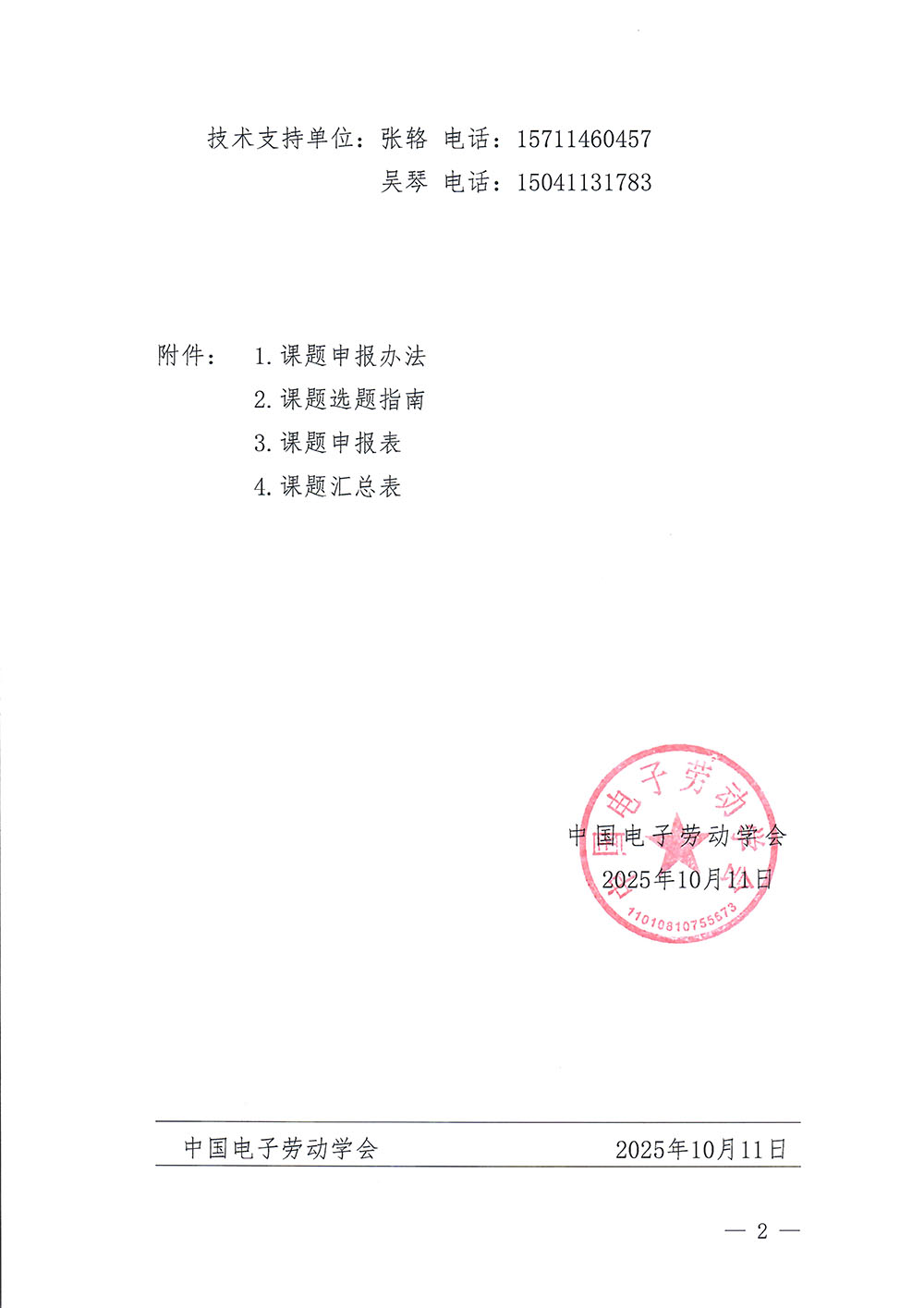 中国电子劳动学会成立于1995年,是经国务院批准,民政部注册登记,工业和信息化部主管的全国性、学术性、非盈利性的全国性社团组织。本项目为学会设立的规划研究课题,具体参照《全国教育科学规划课题管理办法》进行管理。申报单位在申报时应根据本单位科研项目认定管理办法,在申报书“课题负责人所在单位意见”栏明确本项目立项后课题成果对应的认定级别及配套支持措施。如本单位科研项目认定管理办法没有相关规定的,可参照省部级科研项目进行认定和管理。