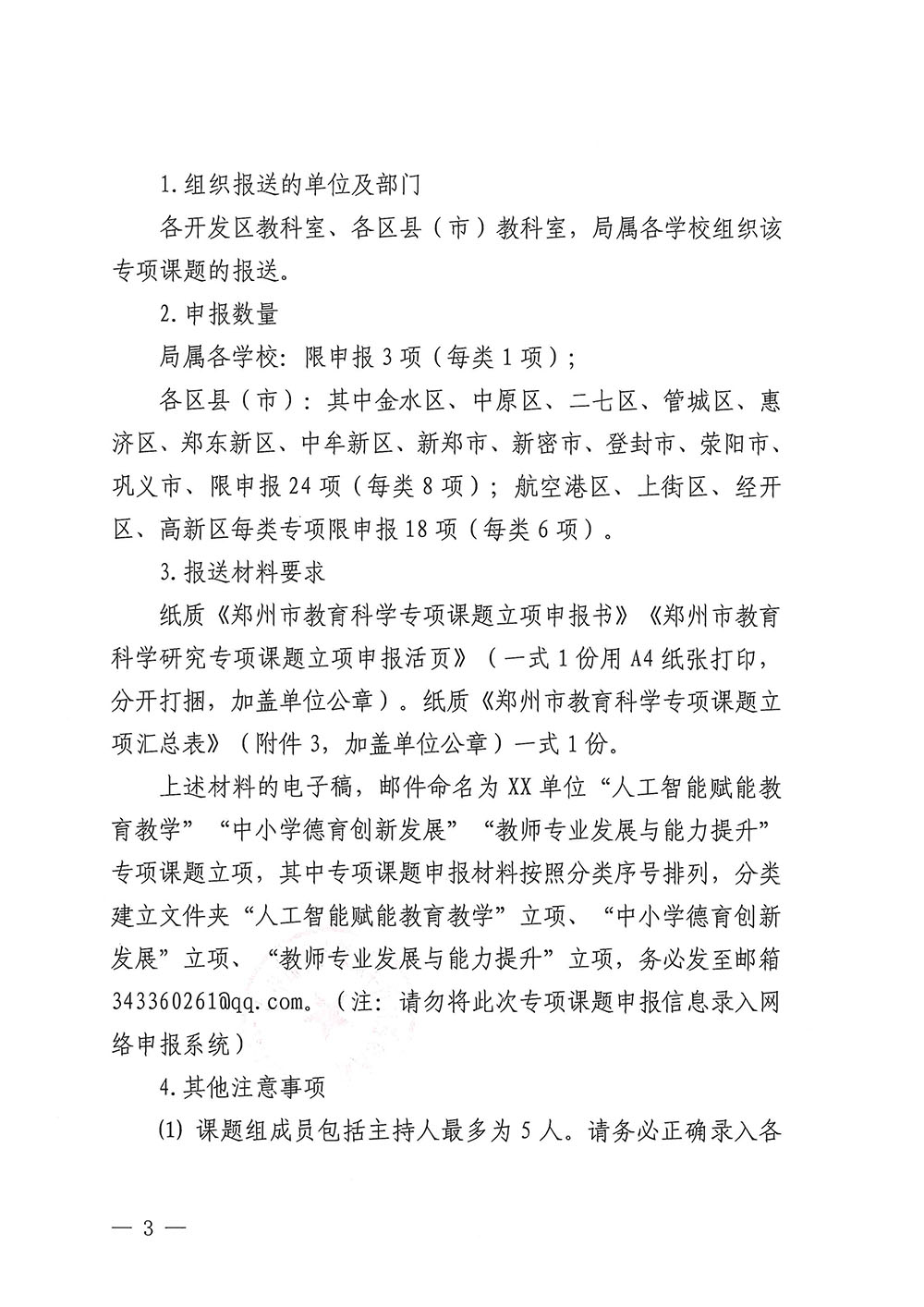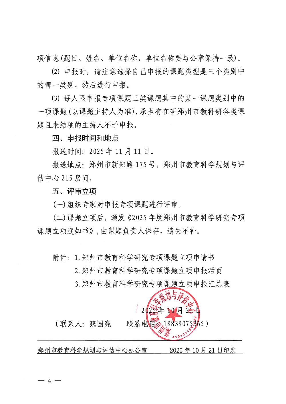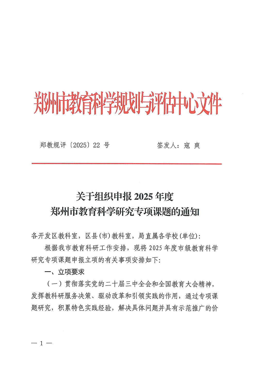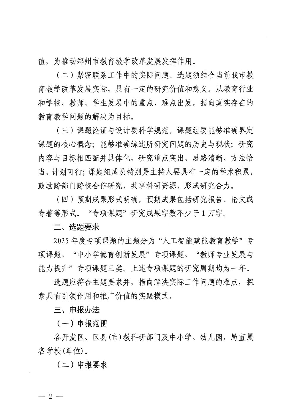 关于组织申报2025年度郑州市教育科学研究专项课题的通知