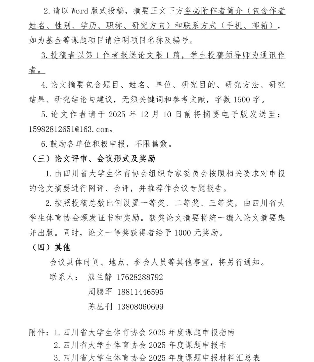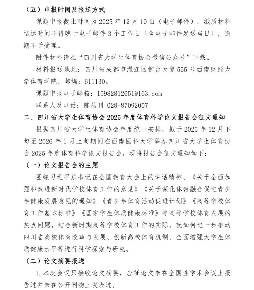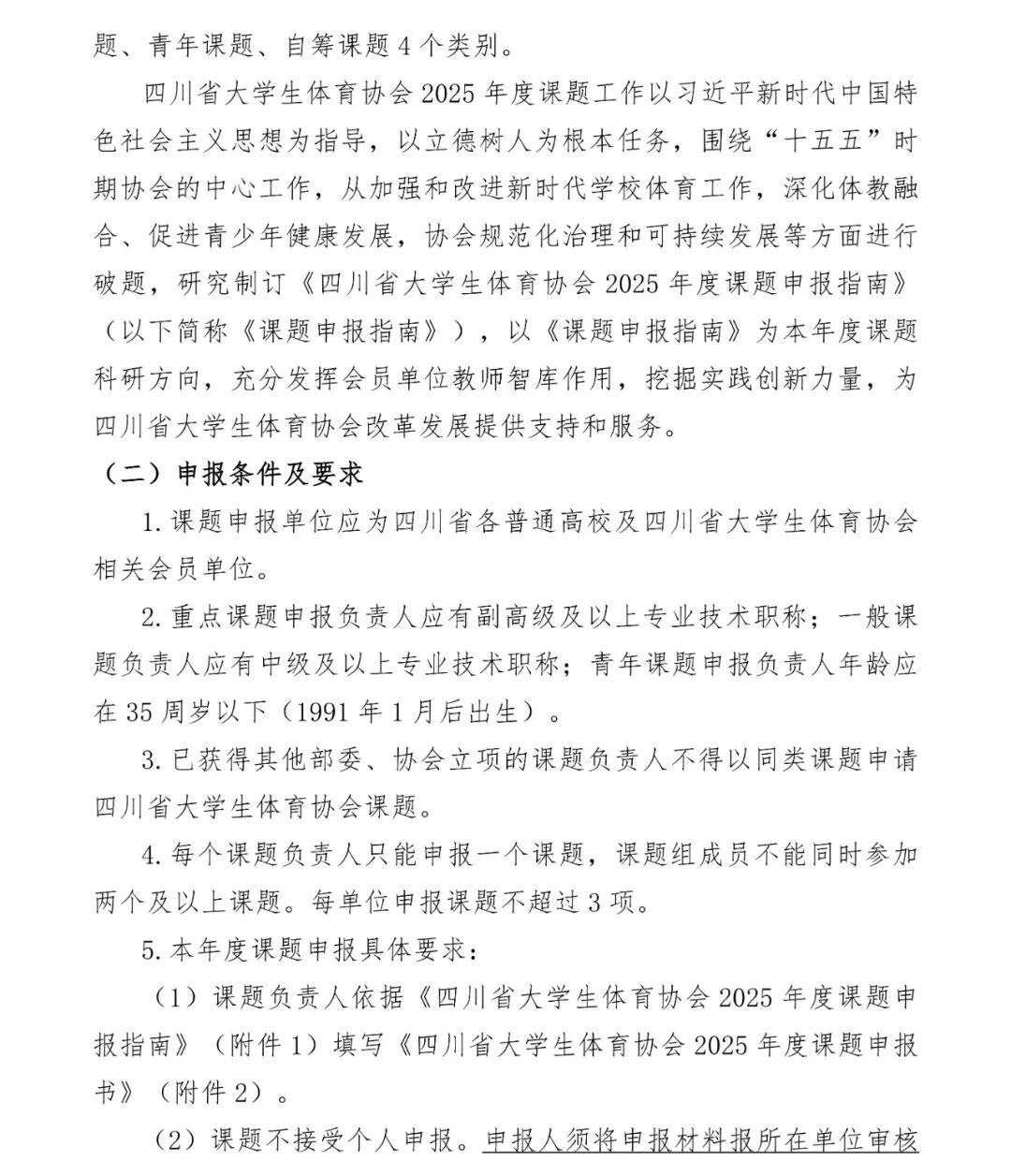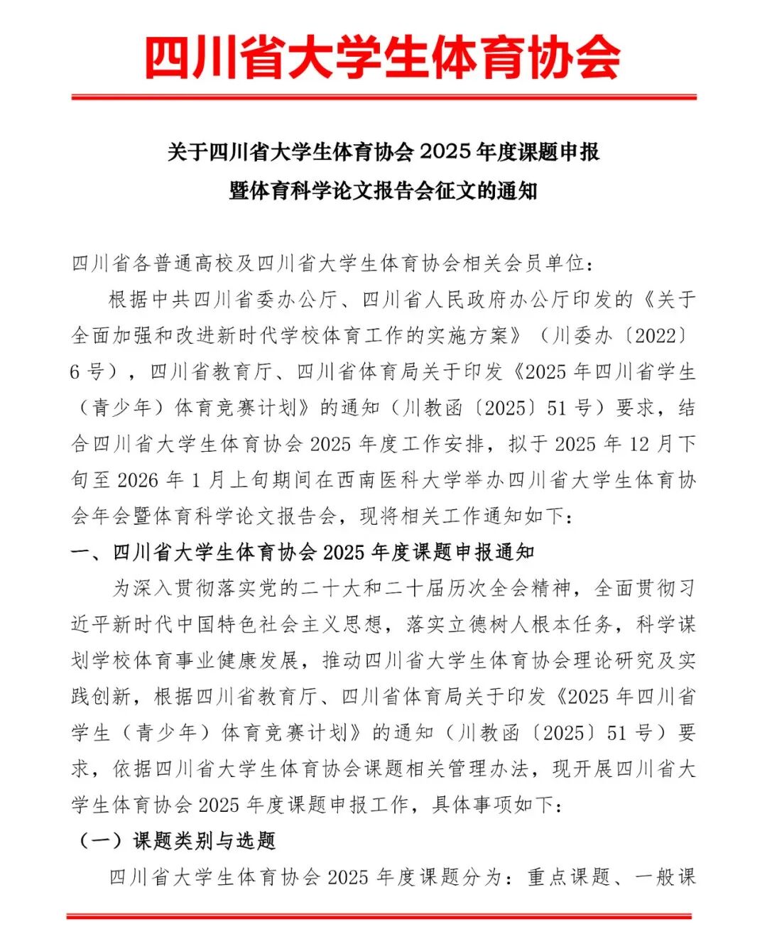 关于四川省大学生体育协会2025年度课题申报暨体育科学论文报告会征文的通知