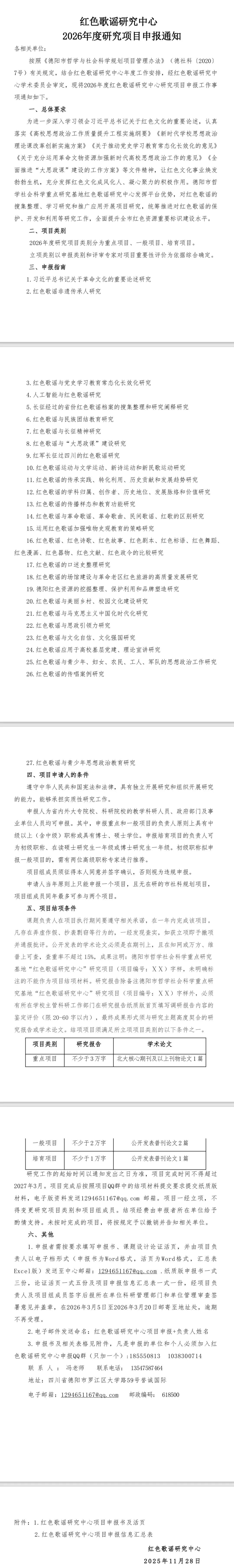 面向全国 | 红色歌谣研究中心2026年度研究项目申报通知