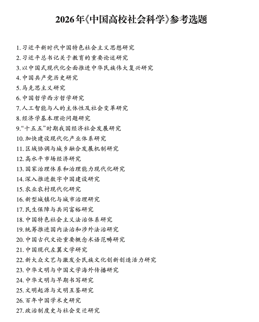 2026年《中国高校社会科学》参考选题