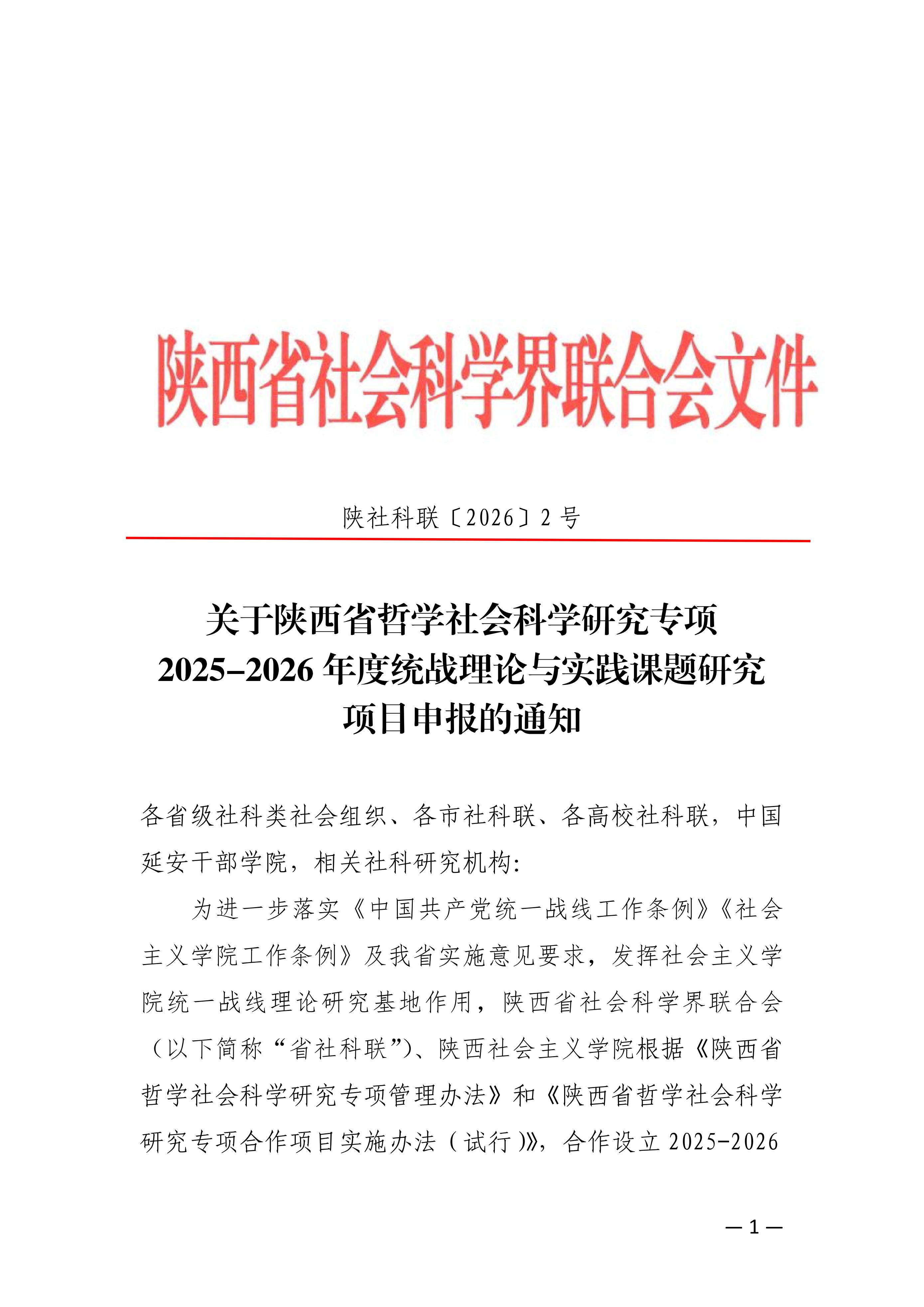 陕西省哲学社会科学研究专项2025-2026年度统战理论与实践课题研究项目申报通知