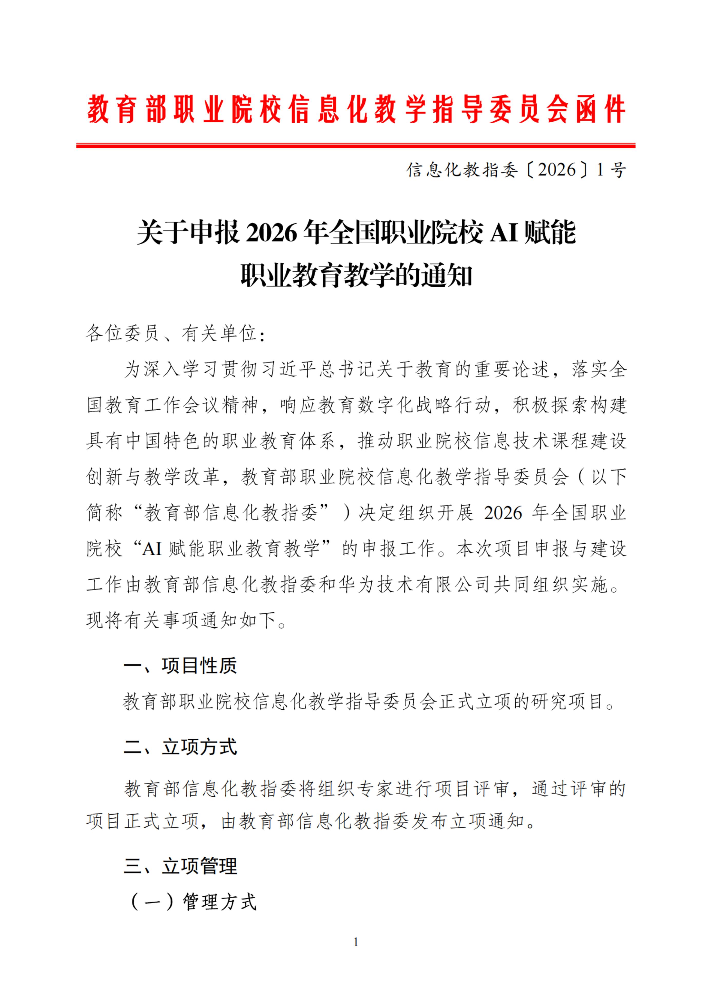 关于申报2026年全国职业院校AI赋能职业教育教学研究项目的通知