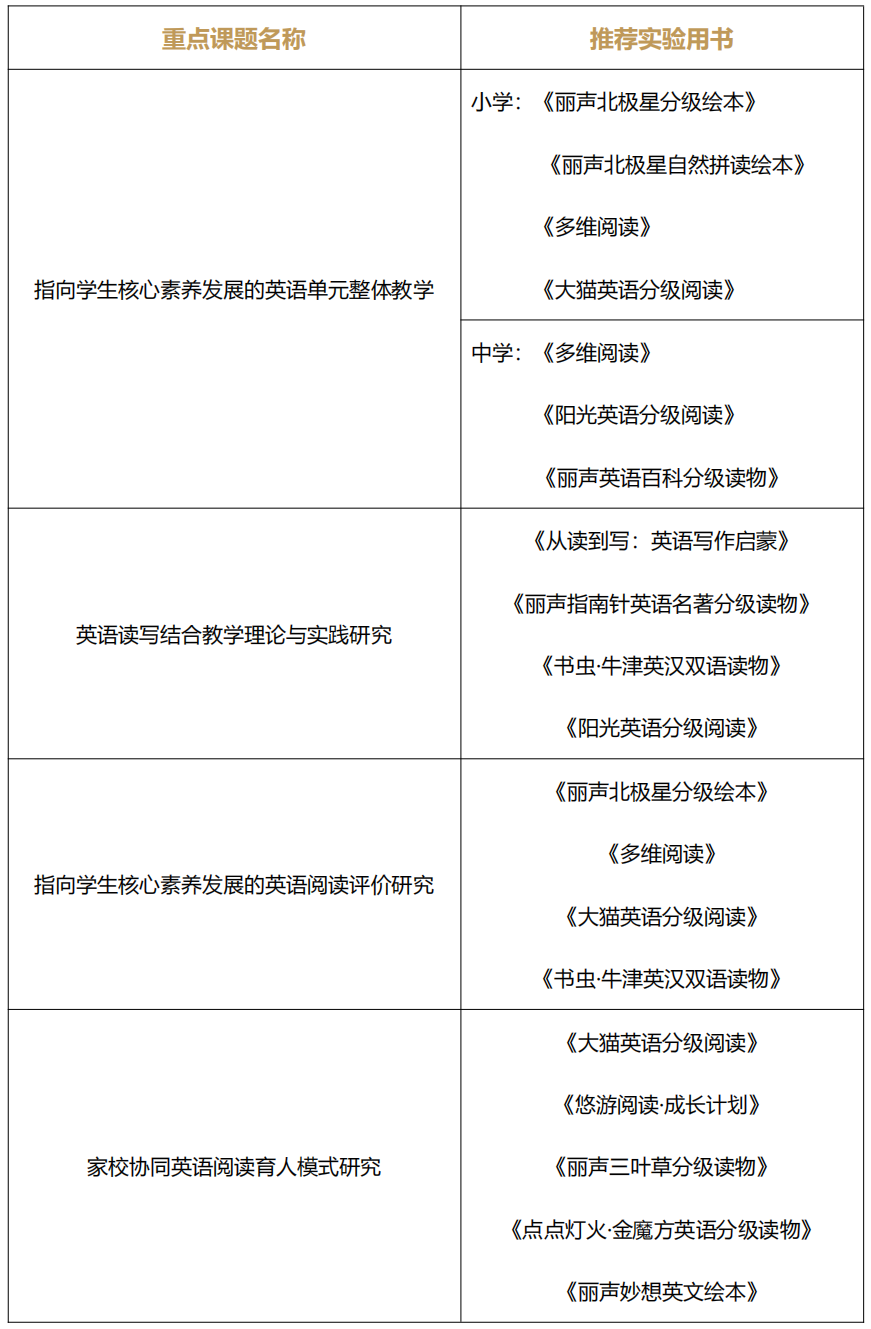 中国英语阅读教育研究院重点课题子课题推荐实验用书