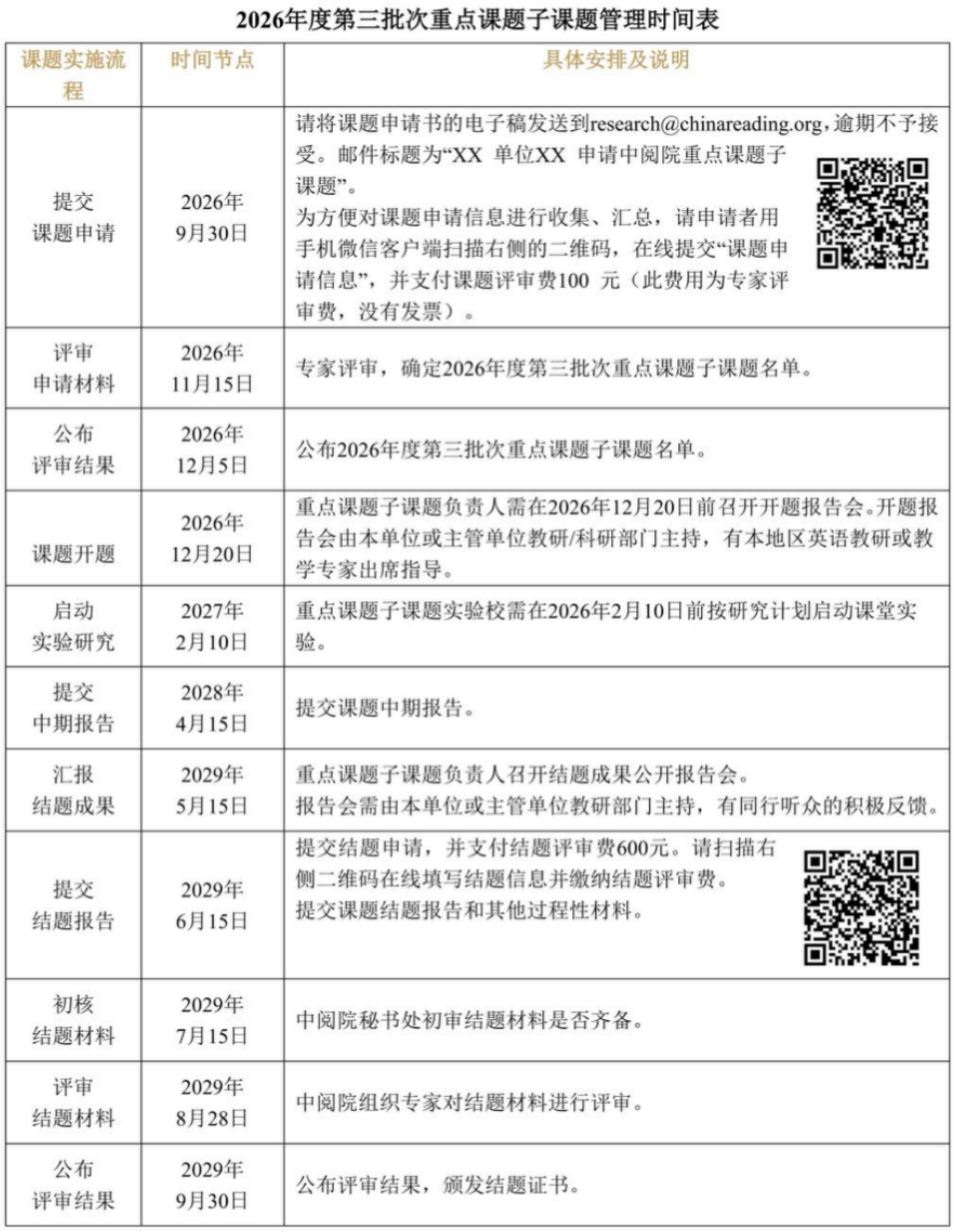 关于中国英语阅读教育研究院2026年度重点课题子课题申报工作的通知