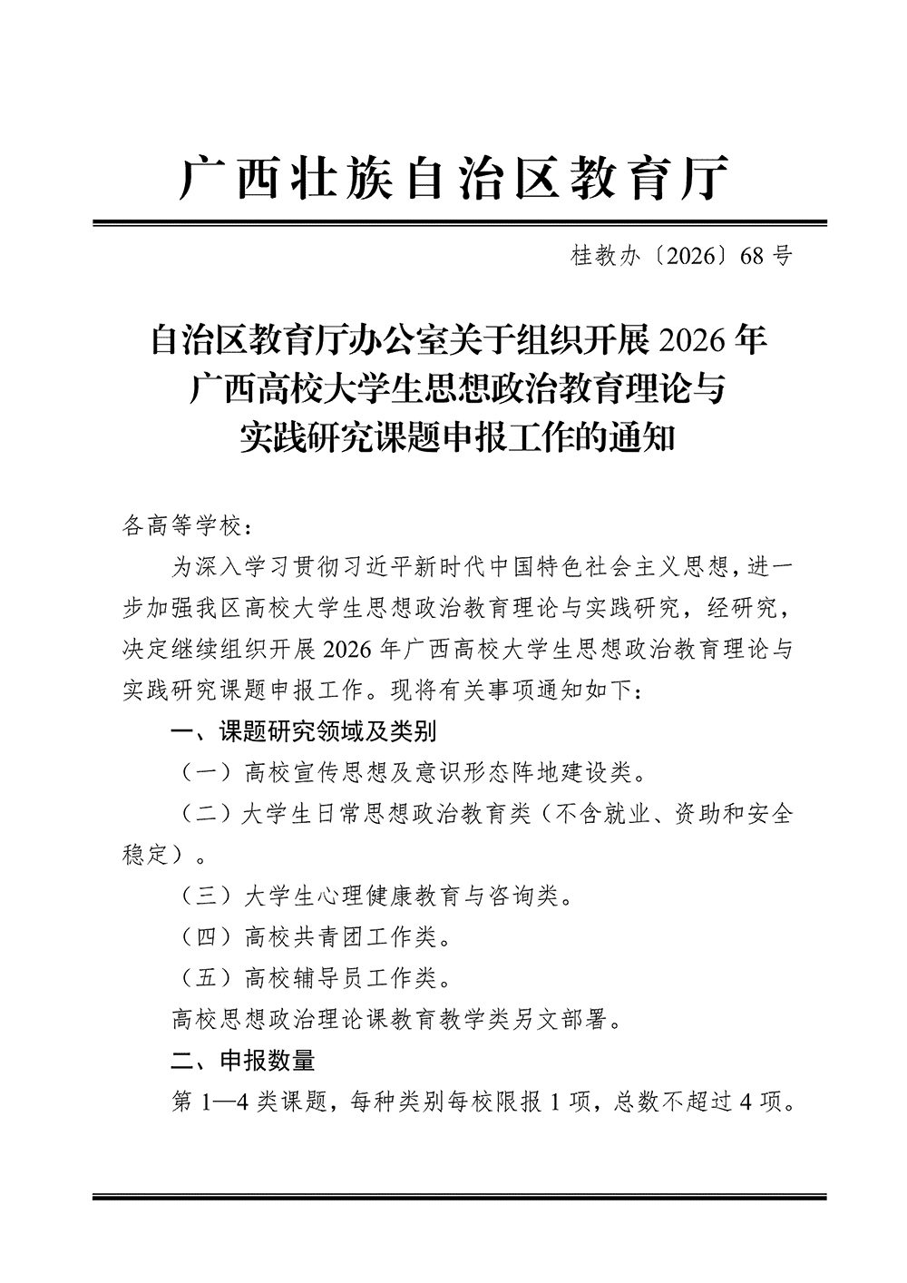 关于组织开展2026年广西高校大学生思想政治教育理论与实践研究课题申报工作的通知