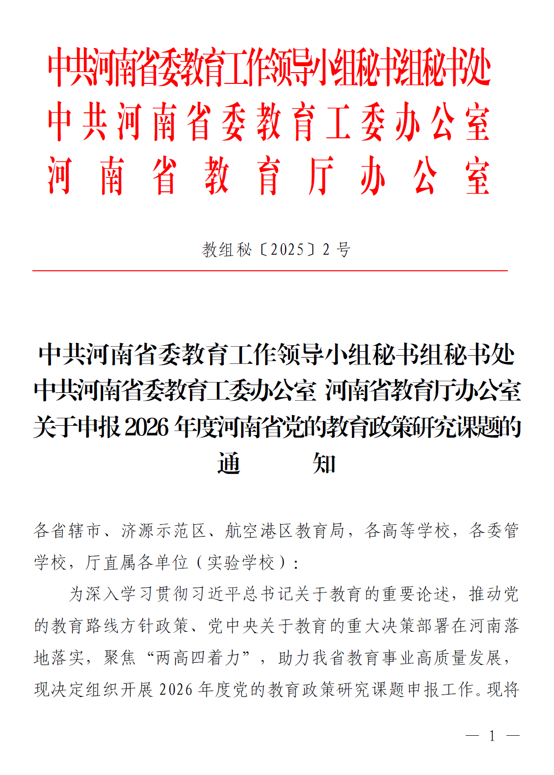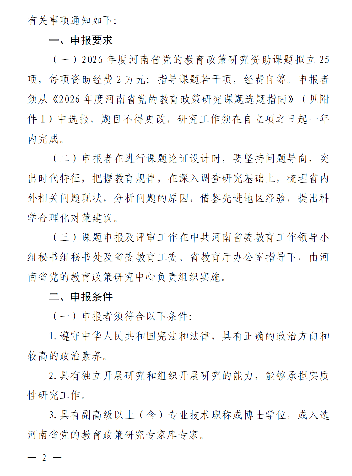 关于申报2026年度河南省党的教育政策研究课题的通知